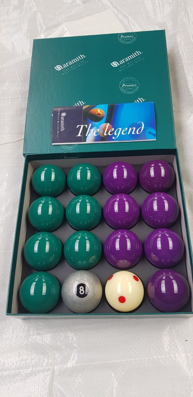 Brand new Aramith Premier 2" Green & Purple Pool balls